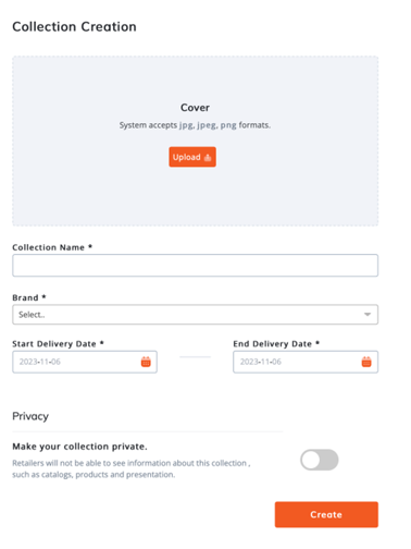 Privacy: select whether you want your collection to be made private or be seen by your Retailers