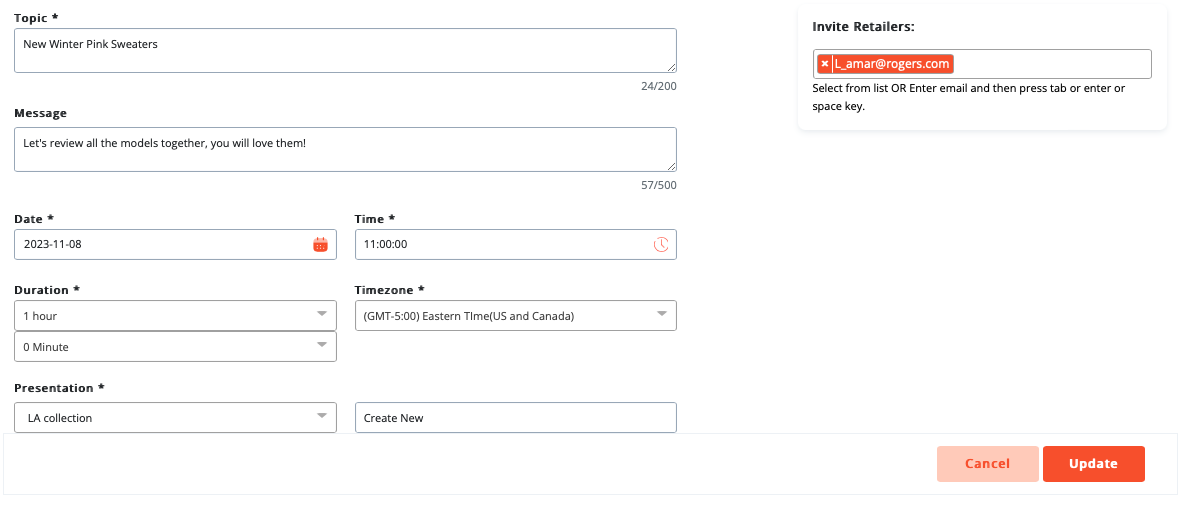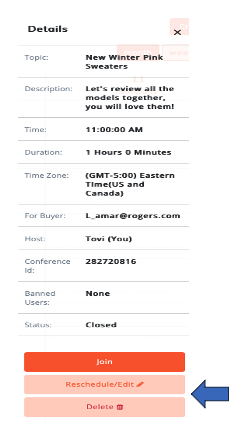 5. Reschedule/Edit: when you click on this option, you will be able to edit any of the fields below, and once finished, simply click “Update” to save your changes.