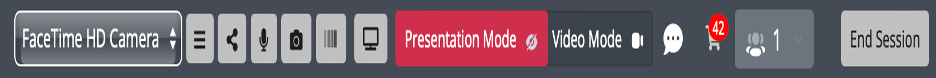 Video Mode: this will show your camera on a larger scale and remove the 3 picture view. You can use this mode when starting the meeting for introductions, and then go back to “Presentation Mode” when ready to present your collection