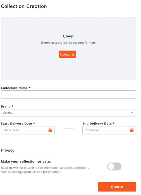 Privacy: select whether you want your collection to be made private or be seen by your Retailers