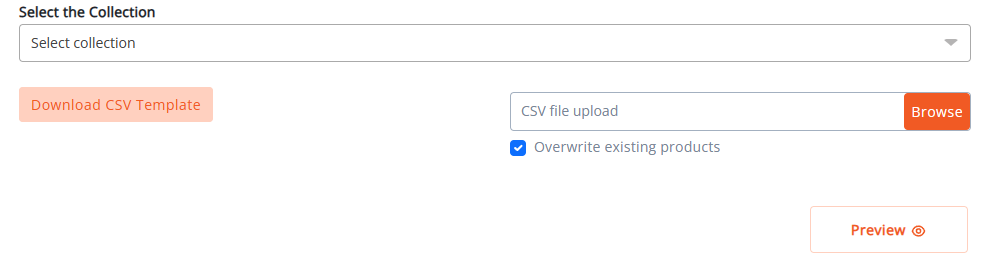 - Click on "Download CSV Template" which will download the CSV template you need to use to fill out all your collection product information, save as a CSV, before uploading it