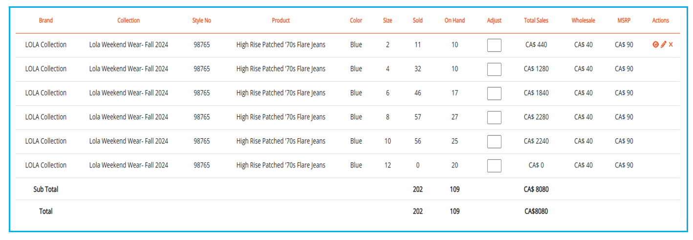 - Sub Total View: Offers a summarized perspective, displaying subtotals for each style number.